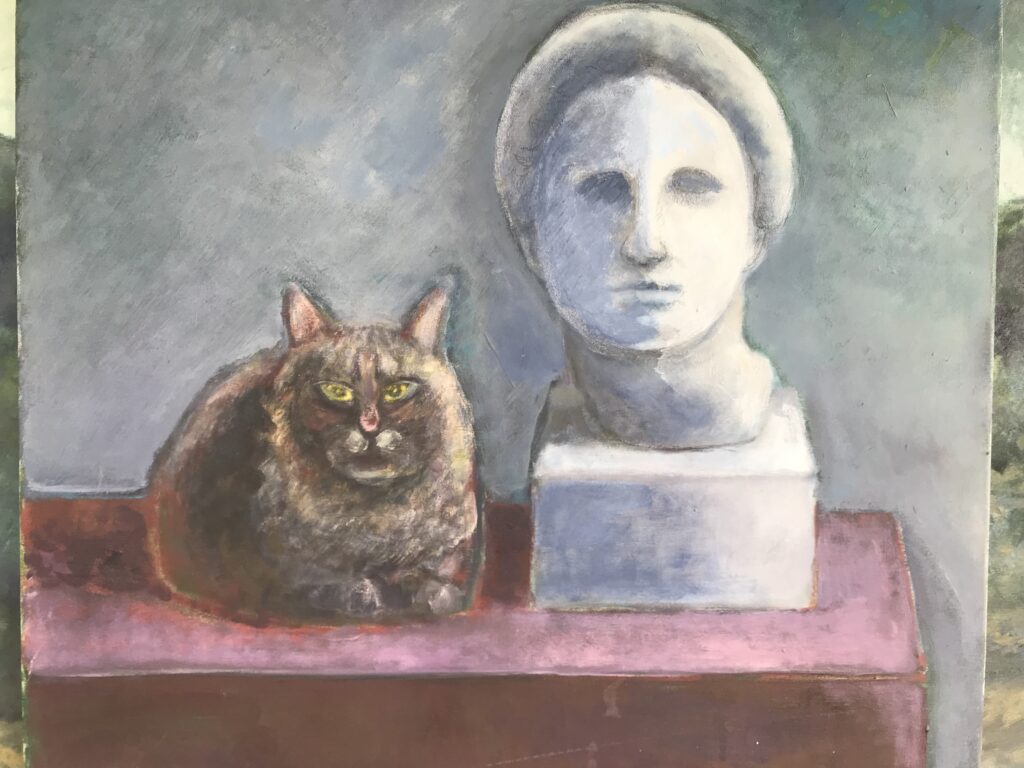Tworzę głównie techniką olejną na płótnie, pozwalając sobie na spokojny proces pracy, w którym liczy się zarówno detal, jak i całość kompozycji.